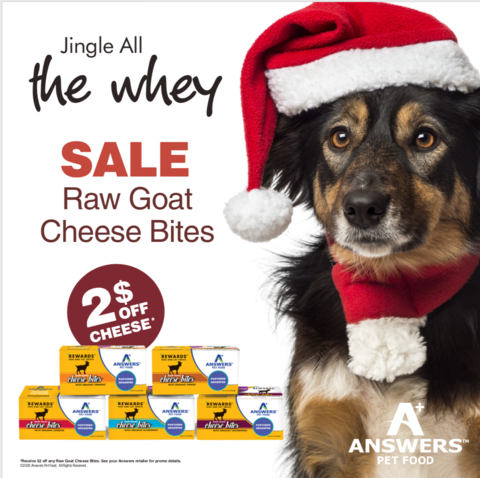 -$2 off any Answers Goat Cheese Bites! Probiotic and enzyme rich, these treats are great for healthy teeth (cats or dogs)