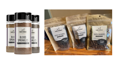 | | FARM HOUNDS TREATS! These dog treats are right up our alley, High quality and humanely raised! The crunchy sticks make great training treats, and for the pickiest of pets, the "blood sprinkles" are an incredible food topper for picky eaters andIt's a great source source of iron and protein. It's also Supports ZERO WASTE farming! Single-ingredient, single farm, and apparently it's super delicious!Farm Hounds source all of their farm-fresh products raw, directly from their farm partners. They say, "We take great care in creating the best product possible, not only to maximize the nutrition during dehydration, but to honor the hard work of the farmers who humanely raised their livestock." They stand behind their treats with a 100% satisfaction guaranteed promise.