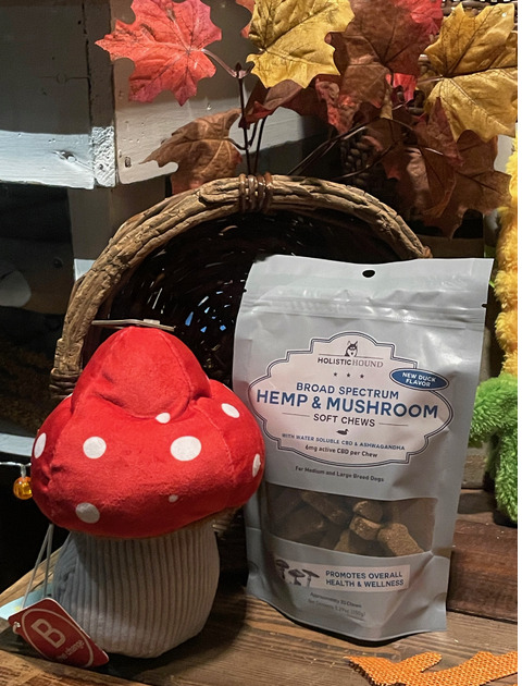 Among MANY other benefits, medicinal mushrooms are amazing for supporting the immune system and shrinking growths. We’ve seen amazing results! Papillomas (warts with a cauliflower appearance) are somewhat common in puppies or animals with compromised immune systems (cats too). They are viral in nature and can be transferred to other animals. We’ve seen great results, shrinking and even eliminating them with medicinal mushrooms. We’ve even seen dramatic shrinking of large tumors! These medicinal mushrooms are non-hallucinogenic and non-toxic.These medicinal mushrooms are carefully grown and selected and they contain both fruiting bodies and mycelium (important when shopping for mushrooms not to buy mushrooms that are just mycelium). They are well researched and are reported to have the following benefits: Helping to maintain a normal inflammatory response, antioxidant protection, helping to support liver and kidney function, helping to support blood sugar and blood pressure to be within normal ranges, helping to maintain normal histamine levels, and supporting seasonal skin allergies. We have 3 brands of Medicinal mushrooms: Holistic Hound, Four Leaf Rover, and Bixbi (we’d suggest rotating between them). All of these are a powder, but Holistic Hound also makes a soft duck chew (pictured above) with the mushrooms and CBD (great for hip and joint as well as cancer/growths)