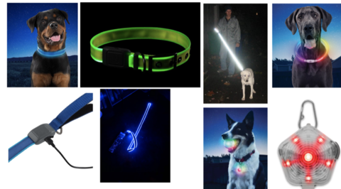 Fall is a difficult time for dog owners, as it's dark by 4:45, meaning you might be spending a fair amount of time walking your dogs in the dark. The unfortunate result of this time change is a higher number of traffic accidents and pedestrian deaths. We’ve had some troubles getting a lot of light-up options, but there are still some products on our shelves that can really help you and your dogs to stay safe. The Cycle Dog reflective leashes are wildly reflective, as you can see from this photo (3rd photo on top). They come in several colors, and are made right in Portland from recycled bicycle tire inner tubes! This leash is unaffected by wet or muddy conditions, and the rubber makes it super grippy. They also come with a ring near the handle that doubles as a bottle opener so you can have the coolest dog at the party! Ruff Wear makes the best light for a dog's collar, as it's completely waterproof, charges with a USB cable (included), and each light has 3 colors to choose from. (pictured in red on bottom right). Its 3 light modes include Slow Flash, Fast Flash, or Always On. Nite Ize has practical options, including a nifty rechargeable LED "necklace" that you can cut to fit your dog (top right). They cycle through 3 different colors or can display one color of your choosing. These allow your pet to be visible from all sides. We of course have some glow in the dark fetch toys and light up battery powered balls, making fetching in the dark much more fun. You might also check out Foot Traffic for some clever ways to illuminate yourself, like a light-up arm band so cars who are approaching you from behind will be sure to see you.