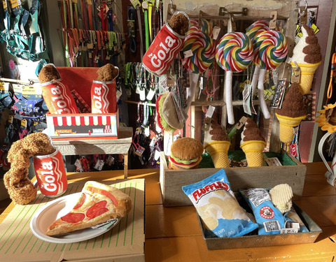 Don't miss out on fun "stuffed" turkeys! Our Thanksgiving display has a variety of nifty treats including a powdered pumpkin and goat milk ice cream that you add water to and freeze. There's even a delicious locally made dog-appropriate holiday meal in a pouch that you can heat and serve on the big day.