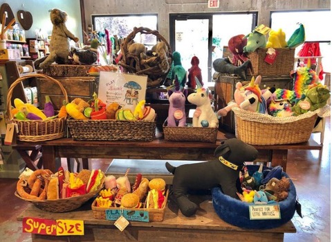 What makes a stuffed animal sustainable? Some are made by B-Corp companies who are dedicated to sustainable and ethical business practices in all aspects of their operations, and are certified as such. Some are making their toys with recycled plastics diverted from landfill, some are made with scraps of material salvaged from the production of other products, and some are making toys that are more durable than other brands, staying out of landfills longer and not requiring replacement as often (saving you money too). So come support your locally owned independent pet supply stores after last week's terrible smokey business disaster (those big chain stores like Mud Bay will be just fine) and grab a squeaky hamburger, a rainbow colored llama, or a giant trout for your goofy toy-loving dog!