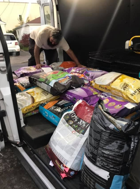 If you ever want to donate food or gently used supplies to those in need, we can always find a way to use them where it's needed most. Two weeks ago, we sent a big pile to Alabama. There’s a group called Free State 4 paws, which is an amazing organization that fosters dogs. They live in an area without any shelters at all, so they're the only hope for unwanted or lost dogs in this part of Alabama. Animal control officers only have one terrible option as there are no facilities to house stray pets, even temporarily. Volunteers affiliated with the organization bring as many donations of food and supplies as they can gather to Alabama, and then brings the van back with a group of dogs to be adopted out here in Portland by groups like Underdogs Rock. On Sept 10th we sent a pile of food with Daphna, an intrepid and dedicated Portland volunteer who brought it to Clackamas County fairgrounds to help pets whose families no longer have anything due to fires, let alone pet food. (Normally she brings our donations to Portland public schools food bank for families facing financial problems, or to the Portland designated homeless encampment downtown, for their pets.) When we told folks about this on social media, several customers called to offer to buy more supplies for families with pets affected by fire. The first offered $150, and by buying things at our cost, they were able to stretch the money to buy a plastic kennel, 2 big bags of kibble, 2 cases of canned food, a litter box and litter and some metal bowls. The next two customers allowed us to buy several more big bags of food, and we emptied our donation boxes of the few things they still had, including another 25lb of food that we donated, and some leashes and collars. Resourceful Daphna found another volunteer from Fences for Fido who was headed down to Salem Fair Grounds, so these donations went right out the door.