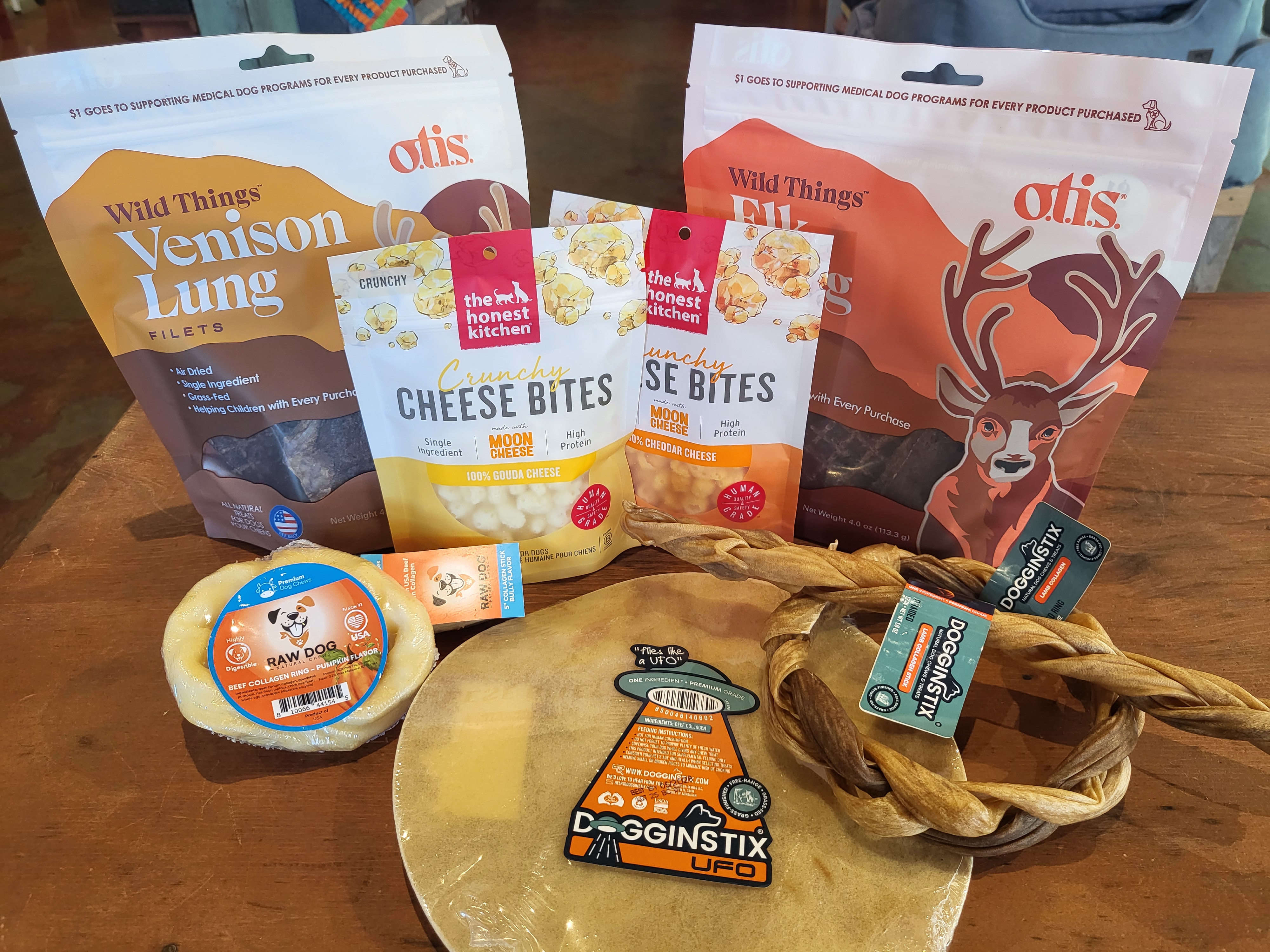 Come check out these new treats and chews! Honest Kitchen Moon Cheese! Crunchy little nuggets of cheese that won't crumble in your pocket, in Gouda and Cheddar!