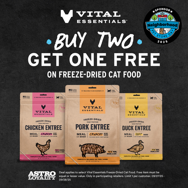 Vital Essentials: Buy 2 FD Cat or Dog Meals, Get 1 Free (limit 1)