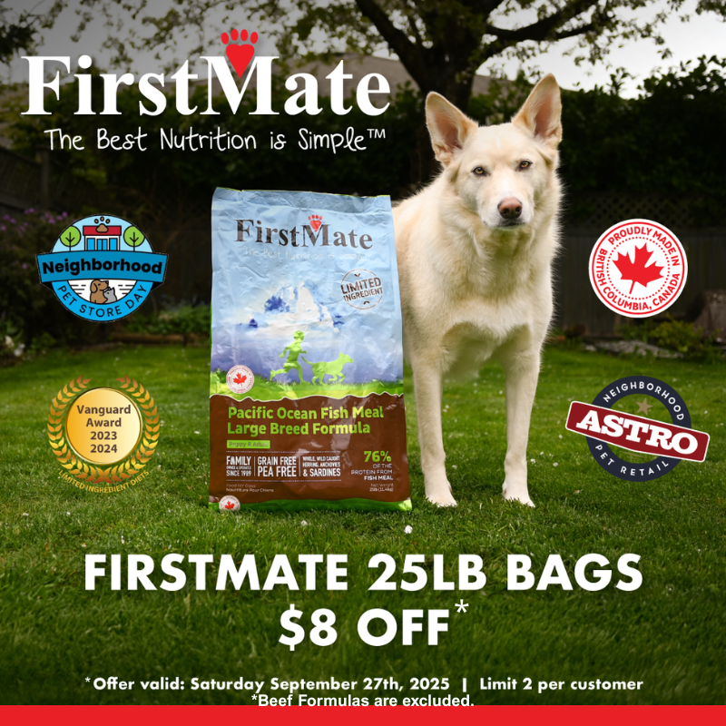 Firstmate: $8 off 25# bags of kibble (limit 2, excluding beef)