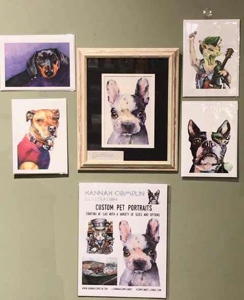 Local artist Hannah Complin does gorgeous pet portraits (she can also create funny caricatures of your pet as punk singers, wizards, sailors, etc). Next time you're in, look at some of her work right near the register (or on our greeting card shelves) and grab her contact info. I'll bet she would even sell gift certificates to use as holiday gifts for friends and family, so they could pick out their own favorite photo of their cherished pet. |