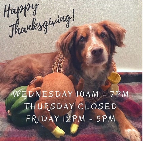 This is a genius device that helps to distract your dog during bath time, brushing, and nail trims. It sticks to tub walls, refrigerators, windows or countertops. Its nubby surface is perfect for smearing with peanut butter, yogurt, etc. Check out this video. Help your dog through fearful situations, or simply occupy them on a rainy day. We just brought in the large size for our first order. Newsletter Special: Mention this Newsletter at the register during the month of November and take 15% off of a Lick Lick Pad! |