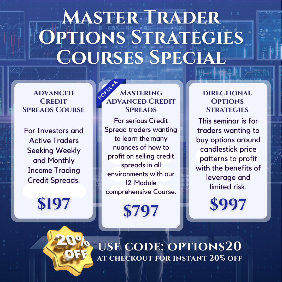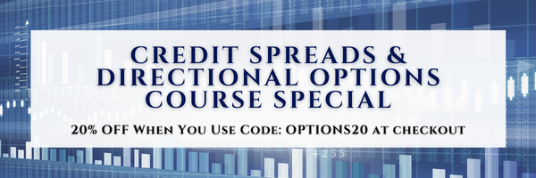 | | | Thank you for attending our Trader's Corner webinar last week! As a thank you, we're sharing a deal for 20% off any of our Option Courses. You are going to learn how trading options is easier, less stressful, and provides limitless opportunities for generating consistent ongoing income. | | | | | | |