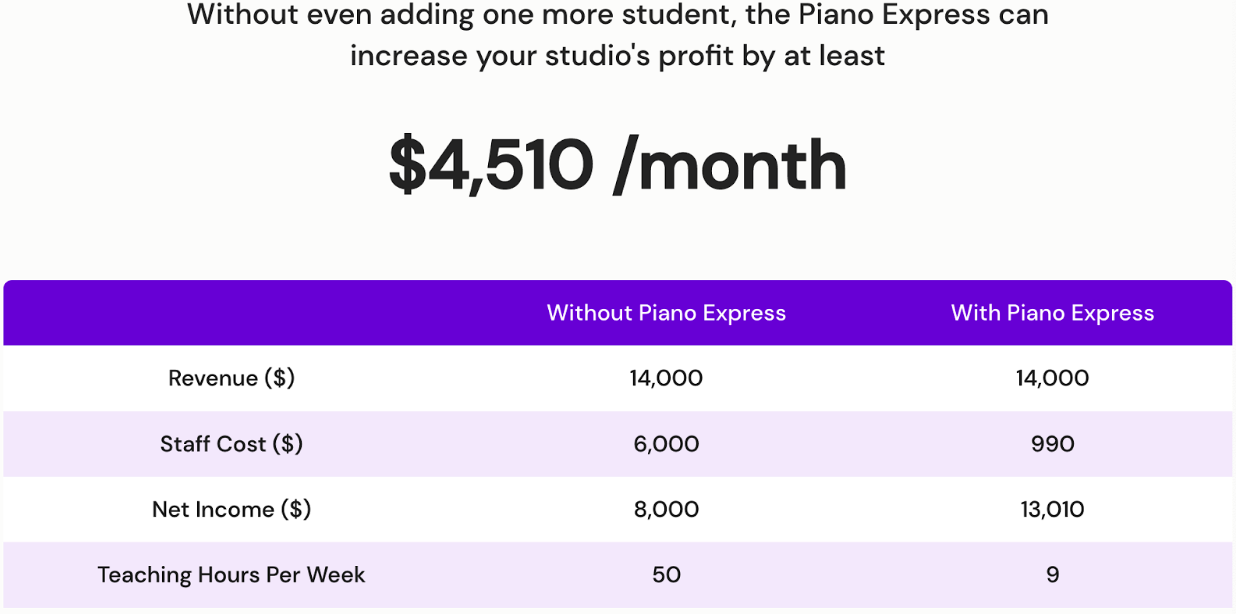 Here’s a conservative estimate of what Piano Express from GroupLessons.com could do for that school: