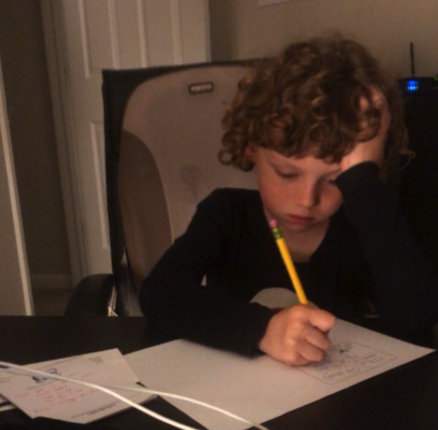 One day, he was laying on our living room floor, coloring in one of his coloring books… and absent-mindedly asked my wife: