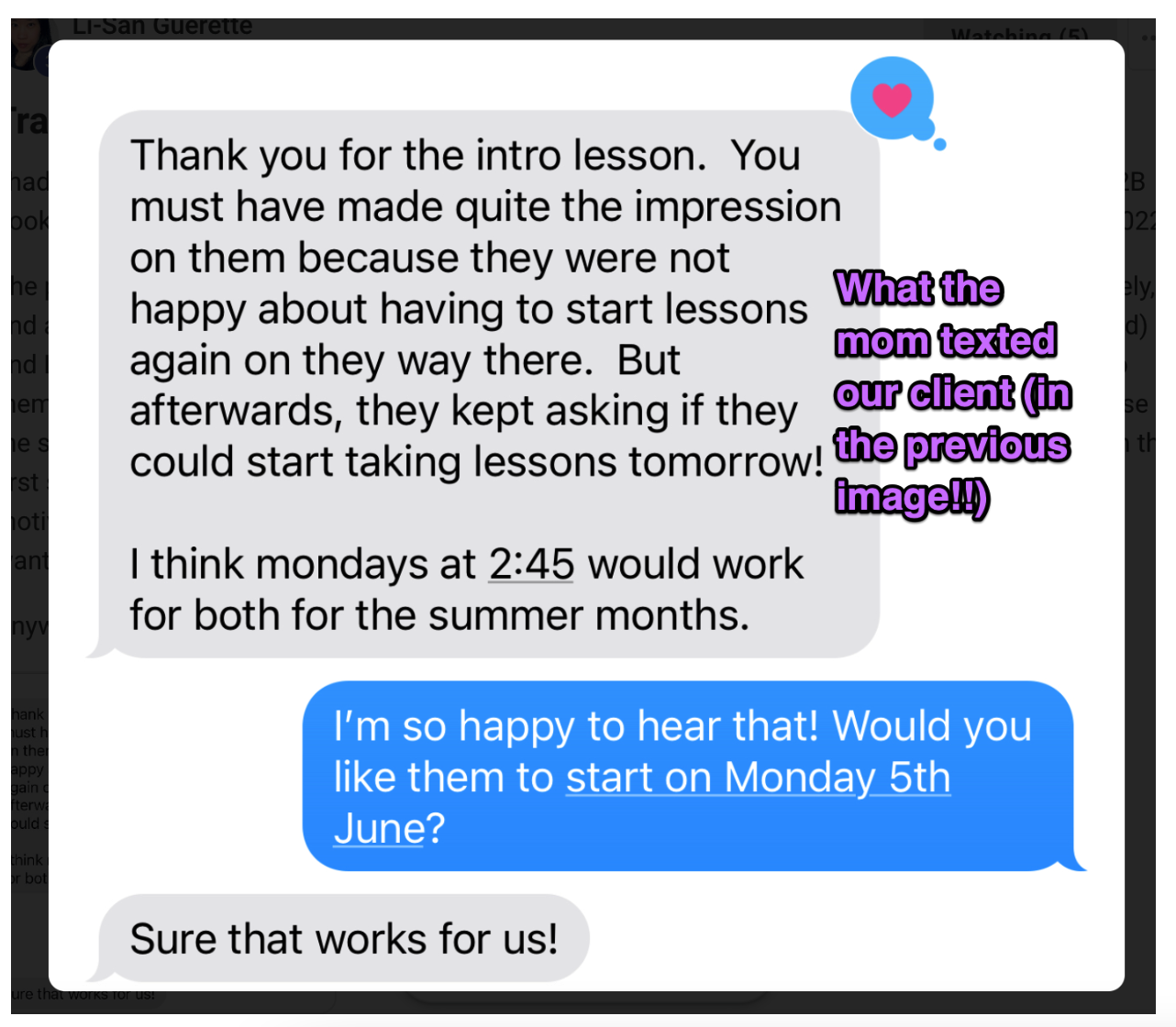This studio owner has been sharing positive feedback that she’s received from parents in her studio…