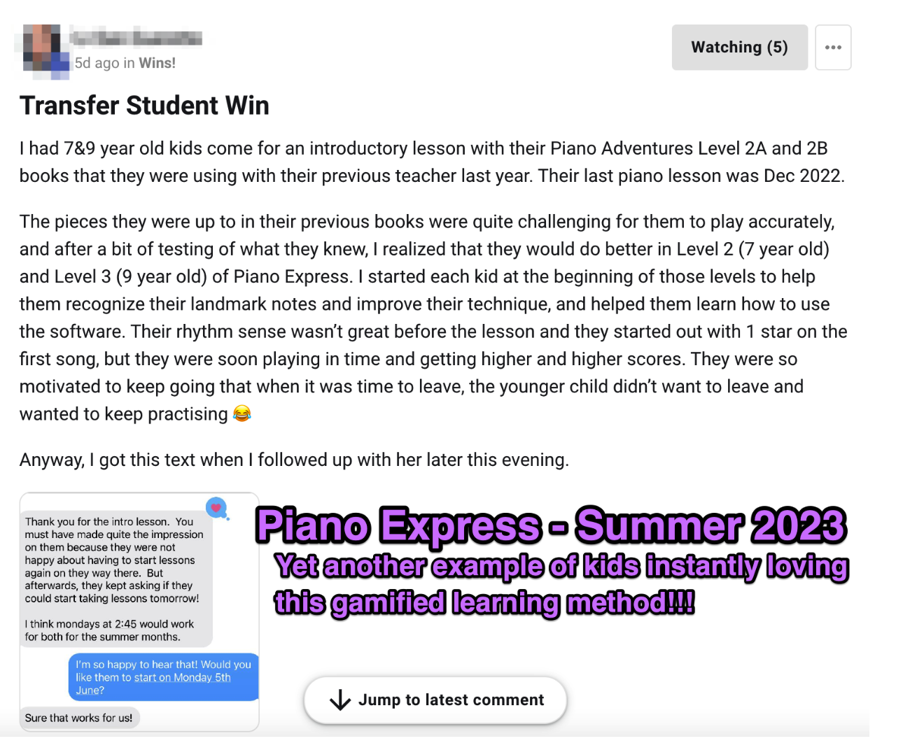 This studio owner reported how all it took was one intro class for two transfer students to completely change their attitude about taking music lessons! They love the gamified piano curriculum! Read here: