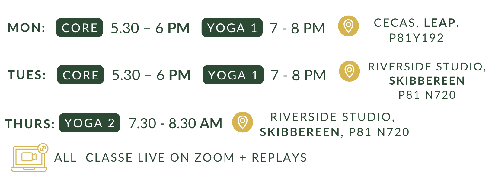 I'm very exctied to announce that classes begin again next Monday in West Cork, so no classes this week and no class this evening.