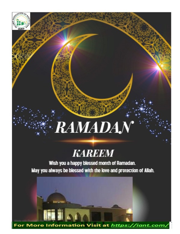 In Shaa Allah, first of Ramadan will be tomorrow April 24, 2020. Due to COVID 19 epedimic all Tarawih and five times prayers are cancelled at IANT. You are encourage to observe local health advisory of Shelter in Place and perform prayers at your homes.