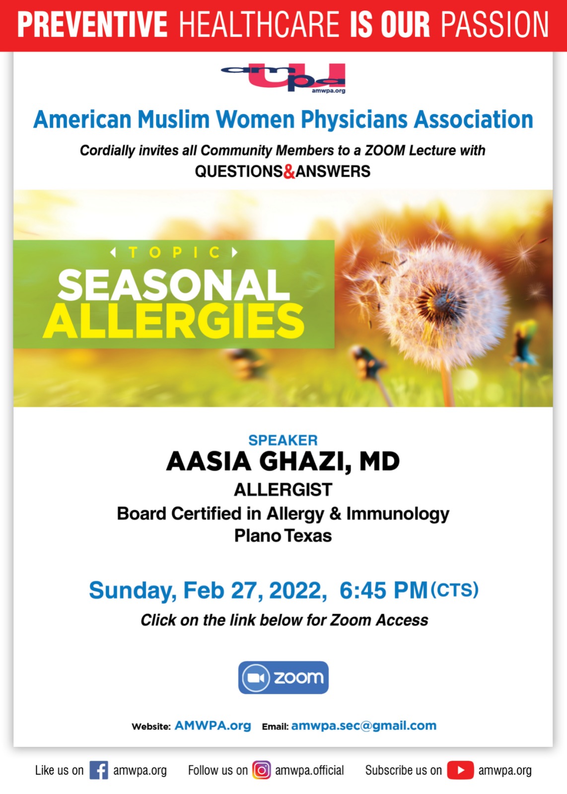 We request everyone to make Duaa for those who passed away in this community, for their relatives or loved ones here or abroad, and for those who may be sick or suffering. Ameen!