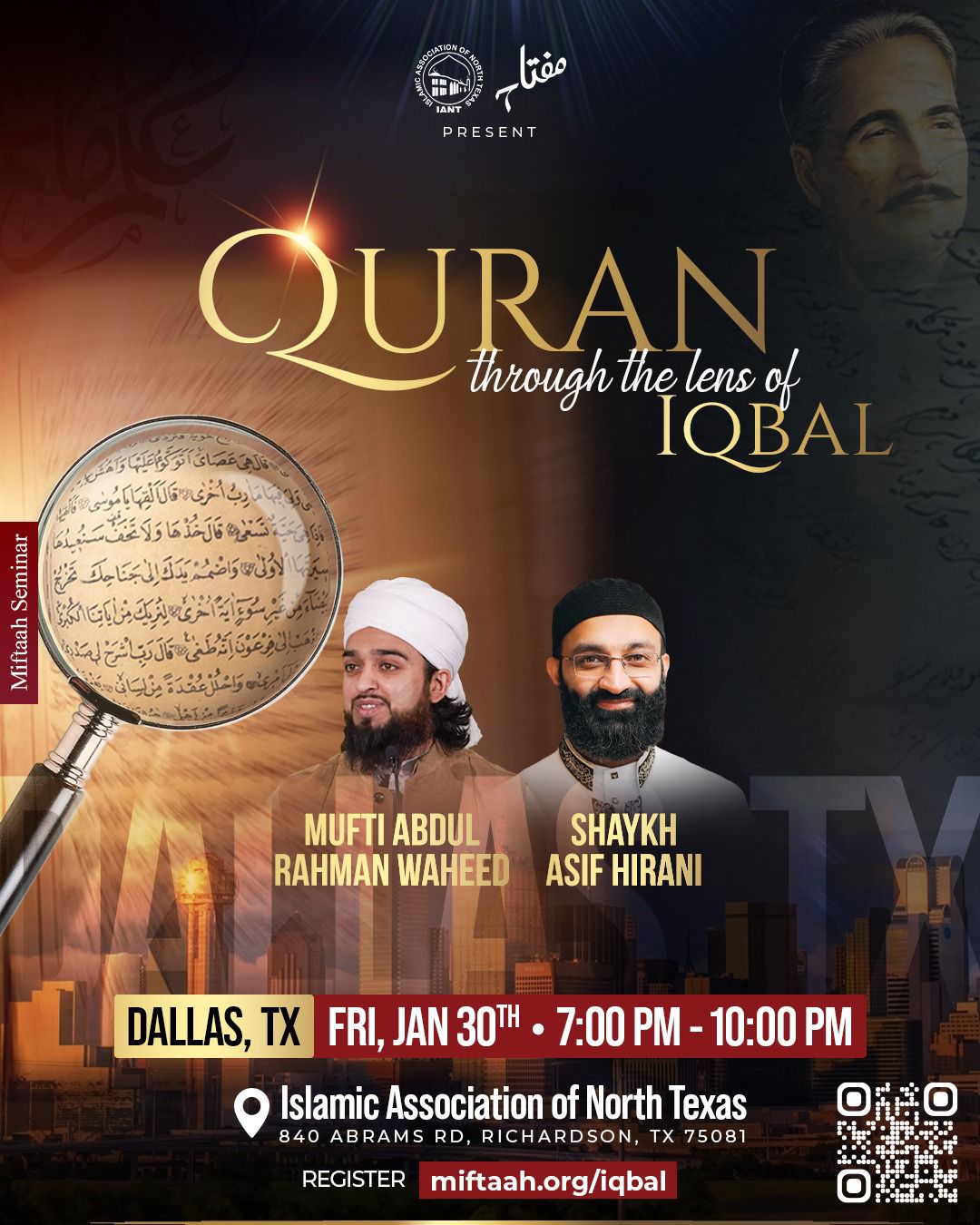 👉 Join us for a powerful evening as Mufti Abdul Rahman Waheed unpacks the Qur’an through the lens of Iqbal’s deep reflections, exploring how revelation speaks to the soul, stirs the intellect, and calls the ummah to awaken.
