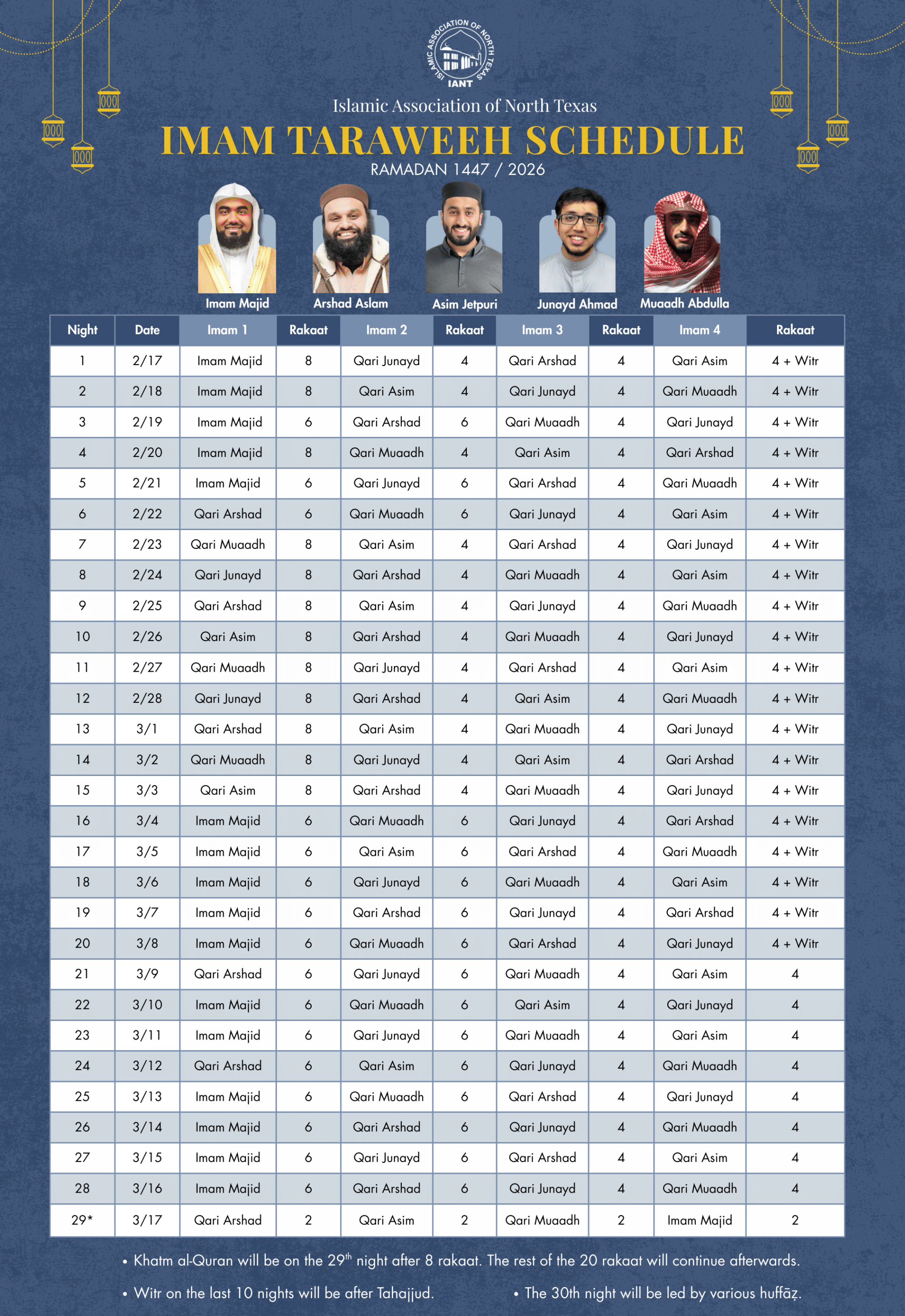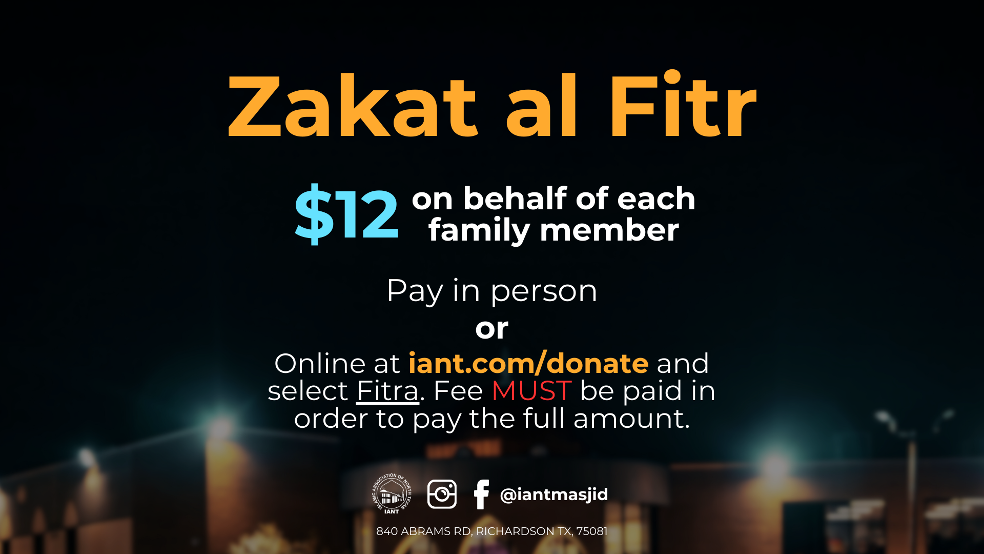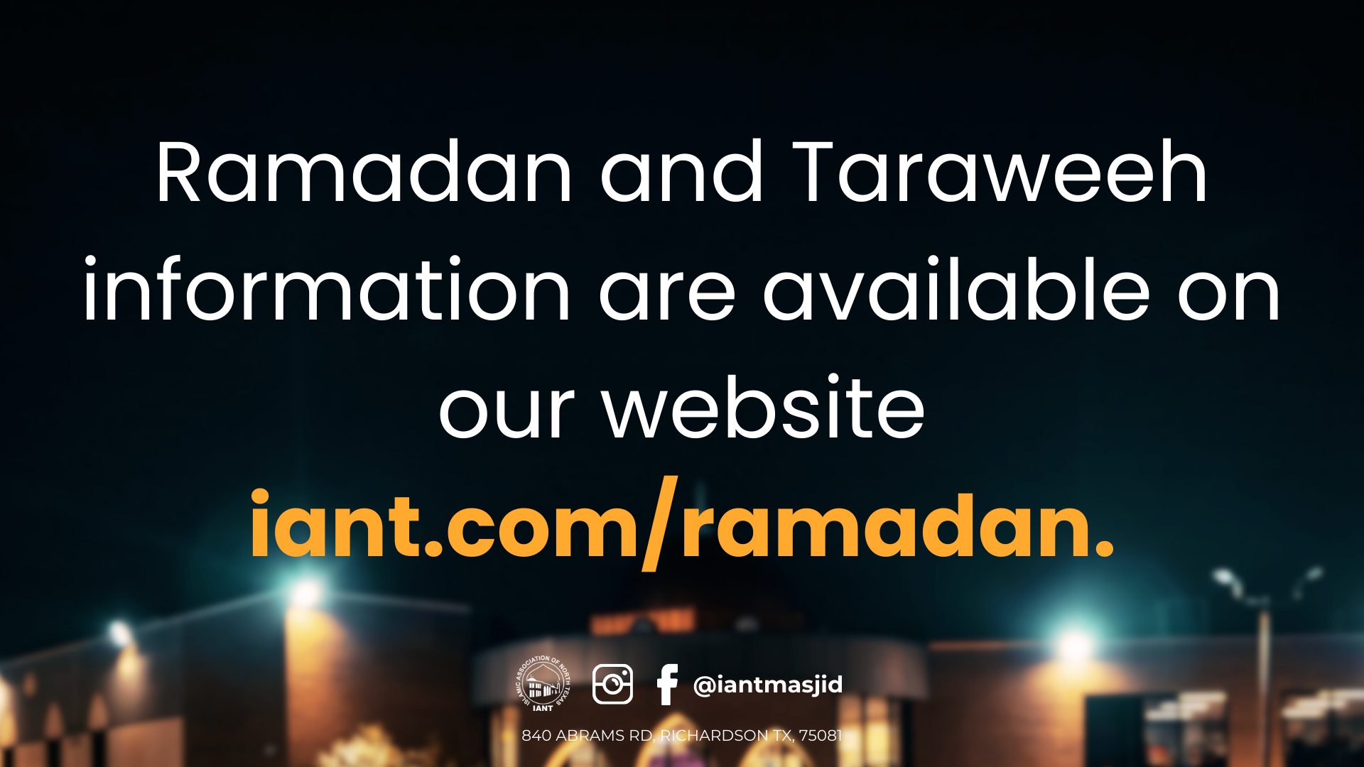 As we approach the evening of the first night of Ramadan. Inshallah, our goal at IANT is to provide our community with a safe and pleasant experience so that you and your family can enjoy and focus on the worship.