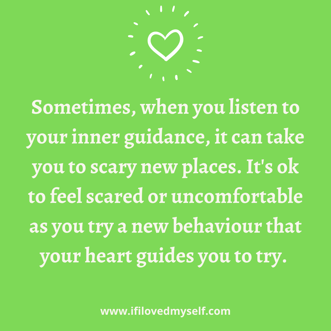 You need to know this. Sometimes, when you listen to your inner guidance, it can take you to scary new places. It's ok to feel scared or uncomfortable as you try a new behaviour that your heart guides you to try.