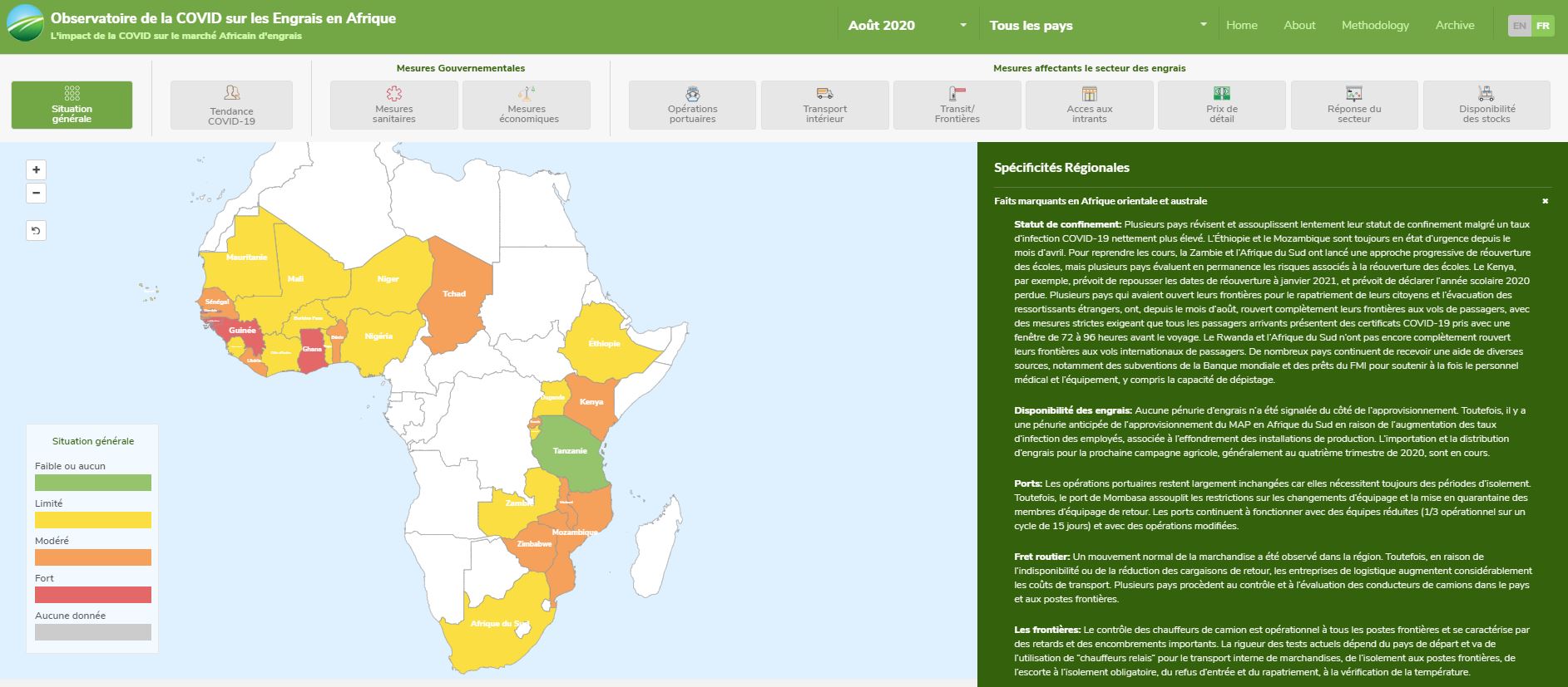 Le tableau de bord de l'Observatoire des engrais COVID-19 pour l'Afrique, qui couvre 28 pays d'Afrique subsaharienne et qui permet de mesurer l'impact du COVID-19 sur le secteur des engrais en Afrique subsaharienne, a été mis à jour avec les informations du mois d'août.