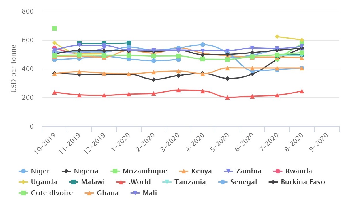 Consultez les prix de détail nationaux sur le site de  AfricaFertilizer.org