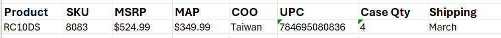 Please find information below for the upcoming release of the new RC10DS. It's substantially similar to 8082, with a cool new body and decal sheet, and a lower price.
