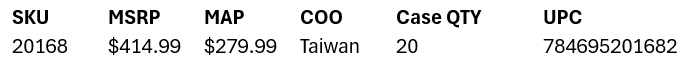 We are replacing 20165 with 20168, an identical version that includes a RADBODY Mako X Clear body, and rubber tires. Note the SKU, Pricing and UPC changes. These are available to pre-order NOW. Reply to this email to do so. Please keep this release confidential until the formal press release comes out. These should be shipping in November. |