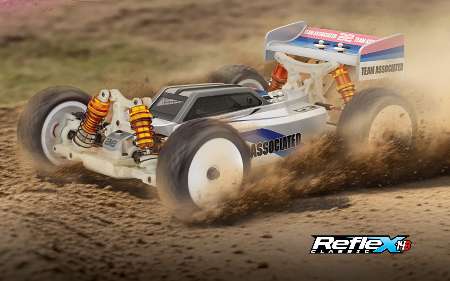 Team Associated has been at the leading edge of off road for over 40 years and proud to introduce the 1:14 scale Reflex 14B Classic Kit 4WD electric buggy. You know this buggy was designed with performance in mind: The adjustability offered by the turnbuckles, caster blocks and rear hubs, make the Reflex 14B Classic Kit perfect for any terrain you can throw at it. Additional features include three sealed differentials, gold aluminum steering rack and light-weight aluminum center driveshaft. These innovations have increased the potential for grip and corner speed, which leads to faster lap times and an overall thrilling-to-drive feel. With the Reflex 14B Classic you can now have big performance in a small scale package!