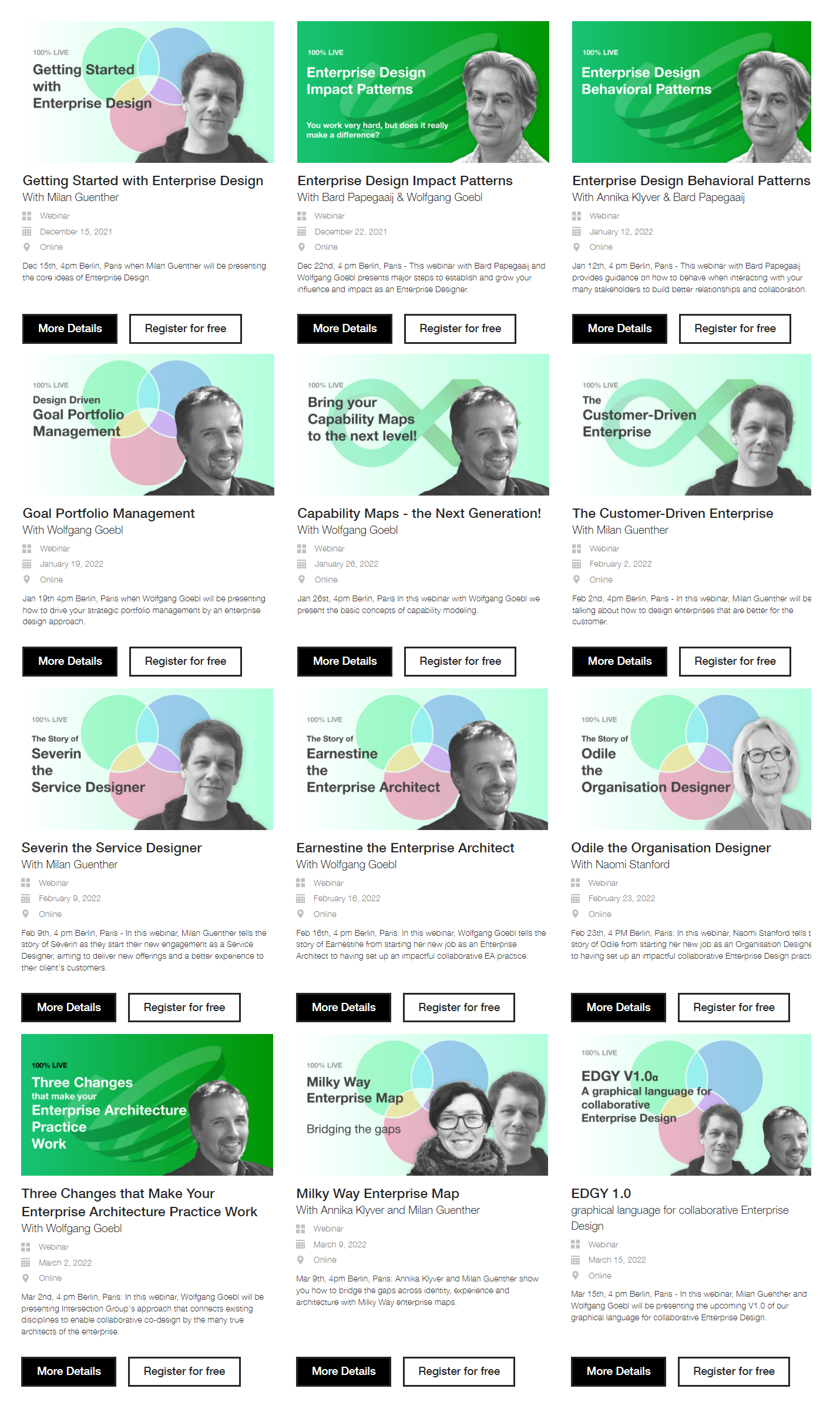 Intersection Group is proud to announce the next lineup of twelve webinars Wednesdays 4 pm Berlin, Paris.