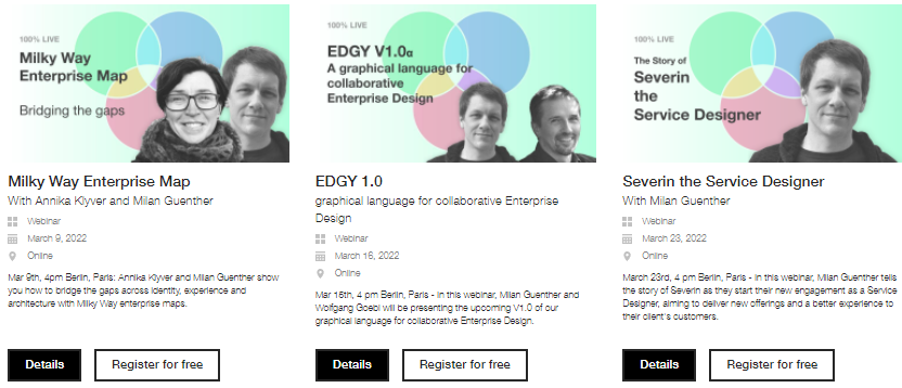Register for our first ->LinkedIn Live event next Wednesday at 4 pm CET (Berlin, Paris) where we will be presenting our approach that connects existing disciplines to enable collaborative co-design by the many architects of the enterprise. In this approach, Enterprise Architects shift more to a coaching/facilitation role connecting the dots of co-designers.