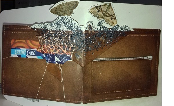 The front of the card said: HANDS OFF THIS WALLET, inside were the moths, cobwebs and the message..