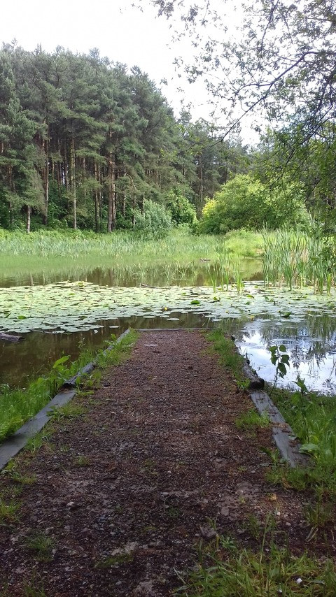 After that, the sun came out just long enough for me to enjoy a great walk through undulating fields of wild flowers, until I reached a smallish, but none the less foreboding pine forest which led out onto a lovely pond full of water lilies. |