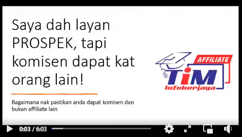 Isu anda dah layan prospek, dah bagi link affiliate. Kemudian prospek beli tapi tak lekat komisen kat anda. Tim Infokerjaya tak jujur! Curi komisen! Ini tidak adil! Ada penindasan di sini! Affiliate lain curi komisen saya! Alamak! Bertenang. Sampai hati cakap kami macam tu... Ok ni video baru. Penjelasan kenapa komisen boleh TERBOCOR ke affiliate lain. Video ringkas 6 minit ni akan jawab isu ni. Jom tonton di group FB kita | | | | Jangan gaduh-gaduh. Kita buat komisen bersama dengan tenang okay!