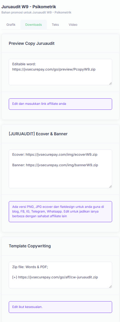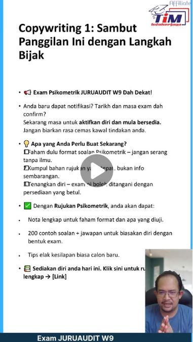 Tetapi untuk JURUAUDIT, gunakan rujukan khas PSIKOMETRIK JURUAUDIT W9. Ambil semua bahan dalam panel affiliate kita ya;