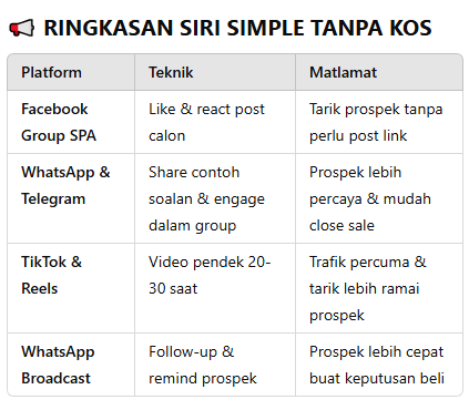 Bila ada produk yang sesuai dengan prospek, mereka tanya kolam, ada yang berminat ke tak. Jika ada yang berminat, mereka cadangkan produk. Dan buat follow up macam yang kita bincang pada SIRI SIMPLE #5/6].