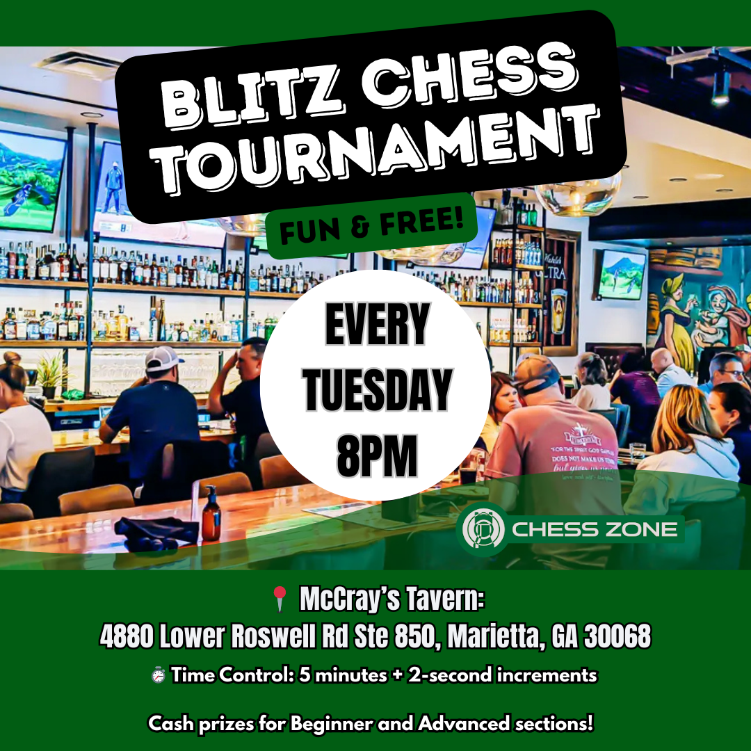 Join us for our FREE Unrated Blitz Tournament at McCray’s Tavern every Tuesday starting December 9th!