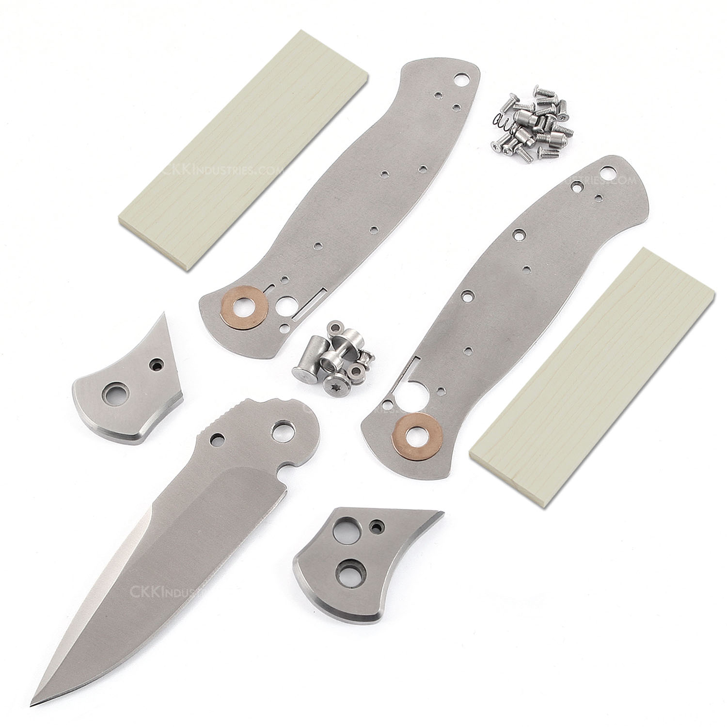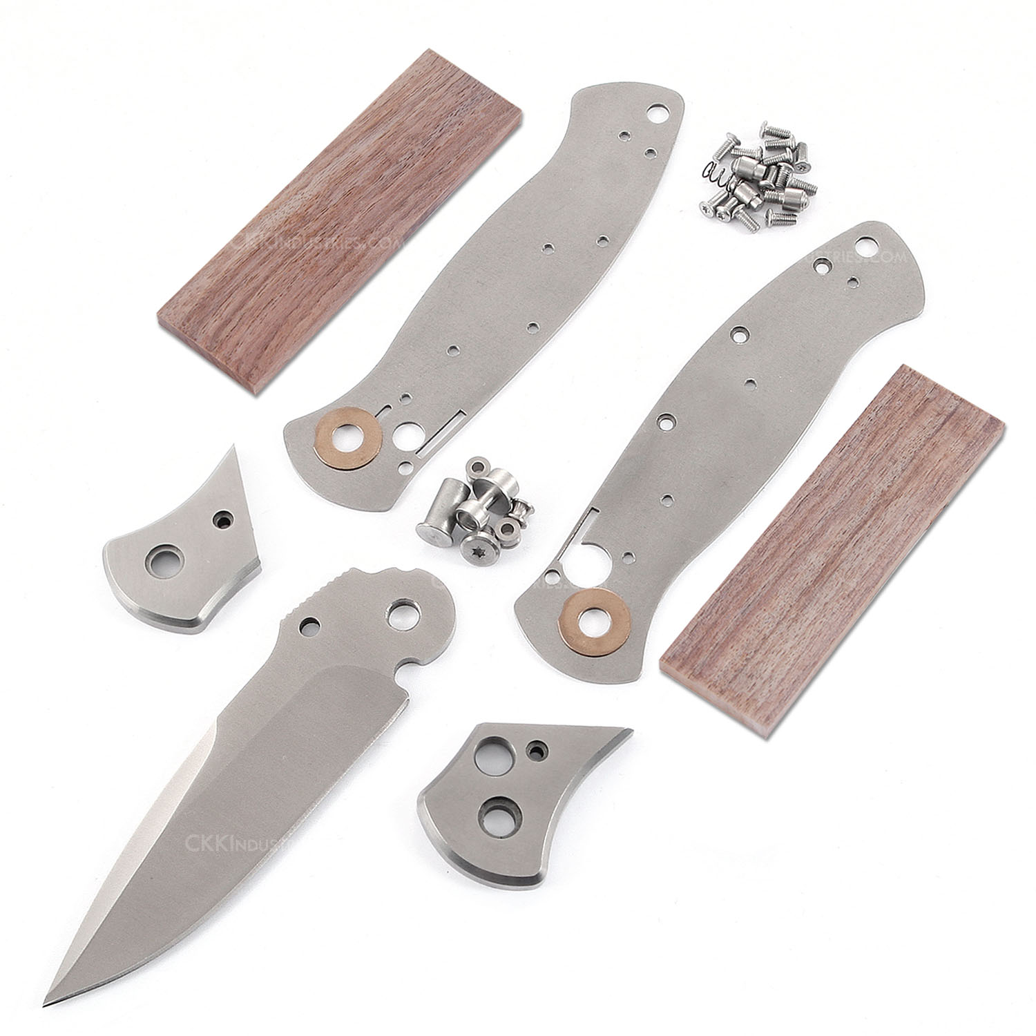 DDR3-BL Button Lock Folding Knife KitCombo Kit w/ Unmilled Exotic Hardwood Scales — USA Design The DDR3-BL is engineered for builders who hold craftsmanship to a precise standard. The kit ships complete with all components required to assemble the base model — every part precision-fitted and finished — paired with your chosen unmilled hardwood scale blank to profile and finish by hand. The result: a pocket knife built to heirloom quality, carrying the mark of the maker from blade to handle. The 440C stainless steel blade is hardened and cryo-treated to RC 56-58, delivering long-lasting edge retention in a modern Bowie-style tactical grind with thumb rest. The high-strength stainless steel frame features pre-radiused bolsters and precision-fitted satin-finished liners, with pre-channeled liners ready for an optional user-fabricated slide safety. The smooth, rapid-deployment button lock mechanism rounds out a kit that rewards the builder who puts in the work. What You Get440C Stainless Blade, Heat & Cryo-Treated — RC 56-58 hardness for superior edge retention and long-term performance Modern Bowie Tactical Grind — 600-grit satin finish with thumb rest, precision-profiled for clean lines High-Strength Stainless Frame & Liners — pre-radiused bolsters and heat-treated satin-finished liners, factory-fitted Smooth Button Lock Mechanism — precision-fitted for rapid deployment; engineered for consistent, reliable function Pre-Channeled Liners — ready for optional user-created slide safety addition Unmilled Exotic Hardwood Scales — your choice of species, cut to 4.0 x 1.25 x .250", ready for profiling and finishing Complete Parts Kit — all hardware and components to complete the base model included Presentation-Grade Gift Box — USA design presented in a premium gift package