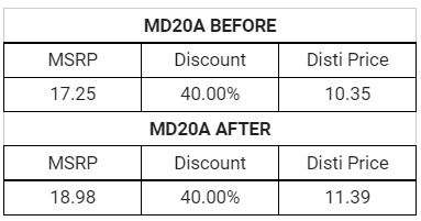 To simplify your work and also to sustain your profit, we will increase the MSRP (list price) by 10% and keep the distributor discount at 40%. We hope the negative impact to your business will be minimal. Please see below an example: |