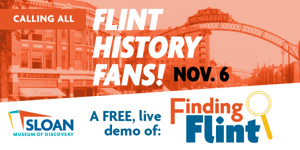 Calling All Flint History Fans! Join us for a live demonstration of "Finding Flint, Sloan's new online research tool where the public can access historical content for free.* Nov. 6, 2025 3:30 p.m. - 4:30 p.m. Sloan Museum, Green Learning Lab Snacks and beverages will be included. No registration required. Questions? Contact Rachel Stock, Archivist RStock@SloanLongway.org, (810) 237-3421.