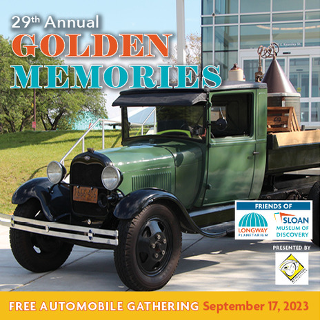 Enjoy a car show featuring vehicles that have celebrated their golden 50th anniversary. Free for both car owners and event-goers. This very special event is exclusively for original or authentically-restored vehicles produced in 1973 or earlier. No visual modifications are allowed, including wheels and hubcaps. Learn more at Sloanlongway.org/GoldenMemories