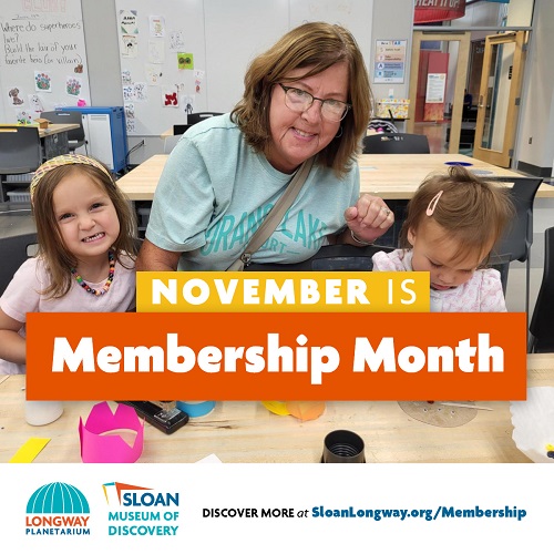 An annual membership to Sloan Museum of Discovery and Longway Planetarium is the perfect gift for the family that likes to explore and learn together, or the friend who likes new experiences in history and science! Among other money-saving benefits for 2026, memberships will allow free entry to two new special exhibits (Ice Dinosaurs: The Lost World of the Alaskan Arctic Jan. 20-May 3, 2026, and Lost World of Dragons, May 19-Sept. 13, 2026), and a brand new show on the big screen at Longway Planetarium (T.Rex: The Greatest of All Tyrants opening January 20, 2026). Buy your memberships before midnight on November 30 to save! Learn more and buy memberships online here, or email Membership Coordinator Matthew Fitzpatrick.