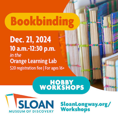 Sat., Dec. 21 10 a.m.-12:30 p.m., for ages 16+ Located inside Sloan Museum's Orange Learning Lab. Cost: $20. Space is limited. Register here or call (810) 237-3450. This is the 2nd of Sloan's new Hobby Workshops for adults! Learn more. |