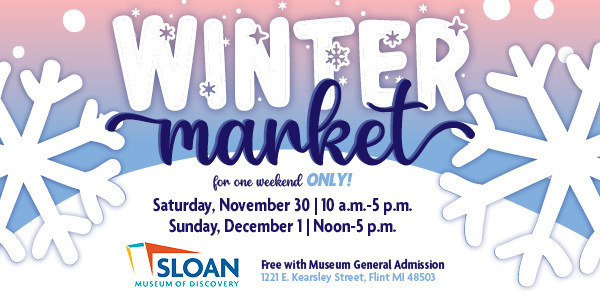 | Winter Market One Weekend Only! Sat., Nov, 30 10 a.m. - 5 p.m. | Sun., Dec. 1 Noon - 5 p.m. A collection of local vendors who have a little bit of everything to help you tackle your shopping list! Located inside Sloan Museum's Fun Gallery. Free with General Admission to Sloan Museum. Learn more. |