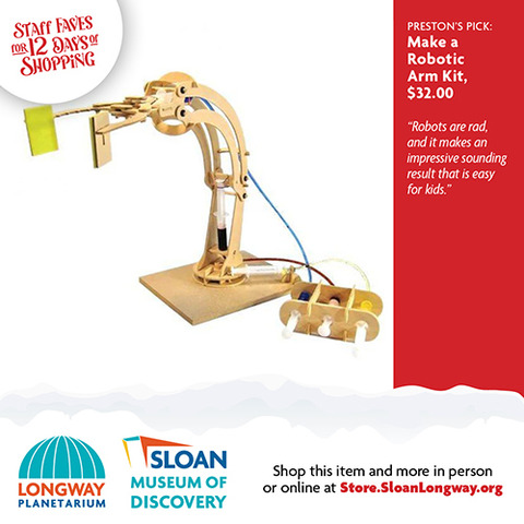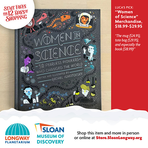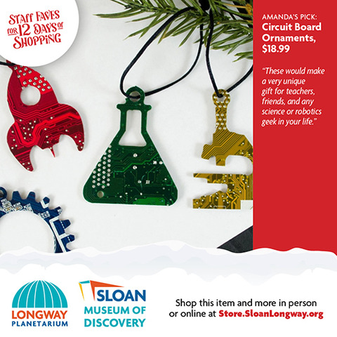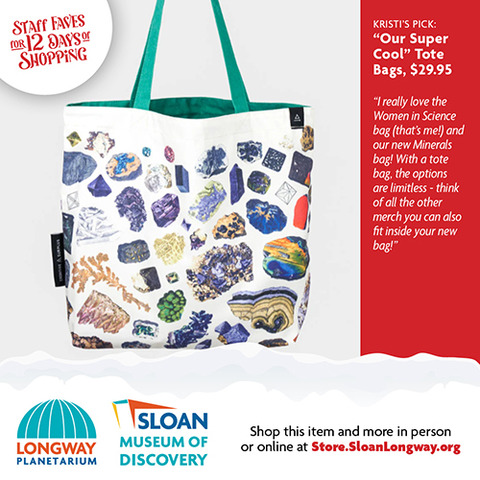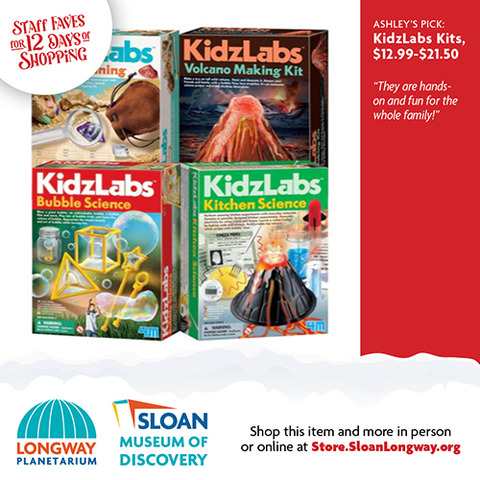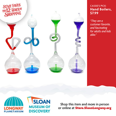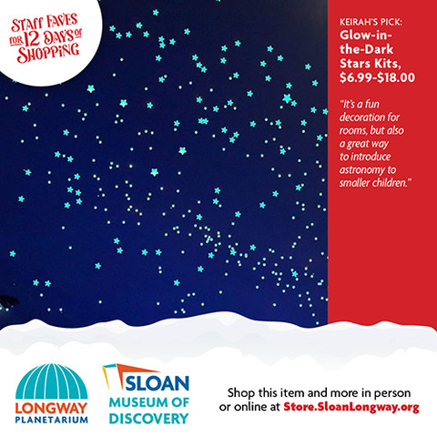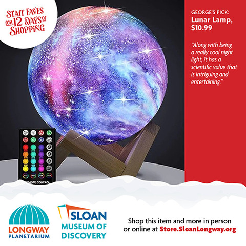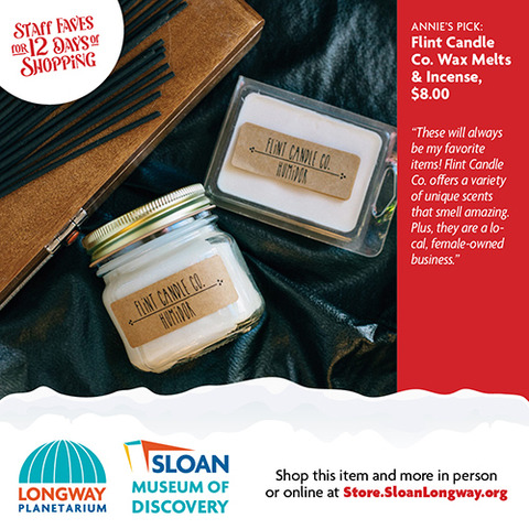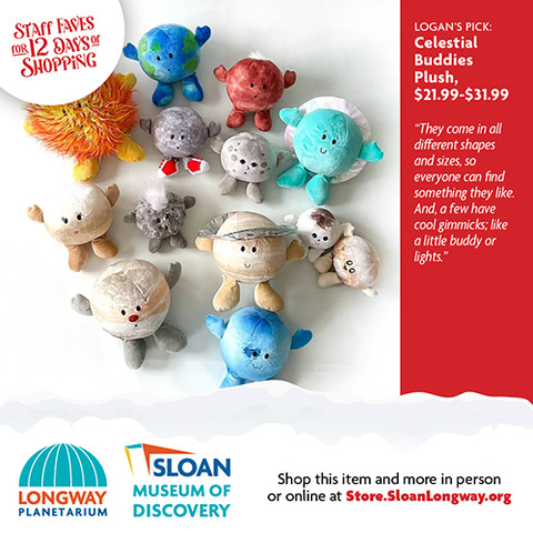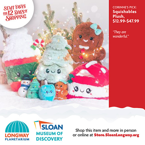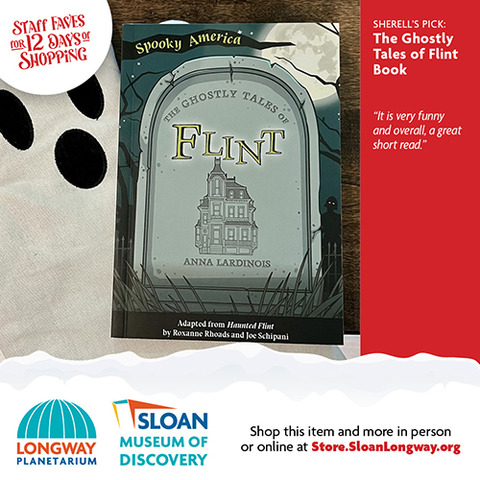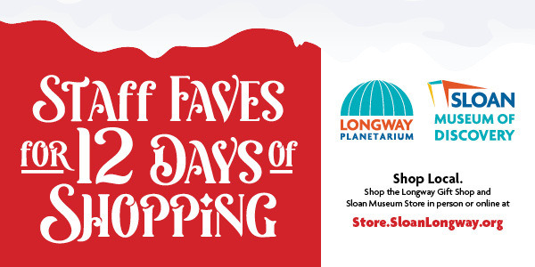 | | The wonderful thing about shopping local is that you can ask advice from a real person who works inside a real building full of magical gifts that you can touch and feel! We did just that and asked our Sloan Museum and Longway Planetarium Gift Shop staff members their last-minute gift ideas. Shopping for your 7-year-old niece who can't get enough Squishables? Or your 80-year-old grandfather who loves Flint History? Or your big brother who still loves to gaze up into the stars and dream? Look no further that the 12 Days of Staff Faves below! Gift Cards are also available. And don't worry...if shopping online is what you need, you can buy most of these gifts through our online store, Sloan.SloanLongway.org; the last day to order online to get gifts by December 24 would be December 16 for Ground deliveries, and December 18 for Priority deliveries. Hope to see you soon! |