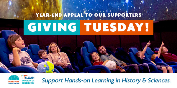 Ignite the Spark that Inspires a Future!Every day at Sloan Museum of Discovery and Longway Planetarium, visitors step into a world of wonder where curiosity sparks discovery, imagination comes to life, and stories from our past connect us to our shared future. Thanks to supporters like you, children, families and adults can explore hands-on educational programs, travel through the stars in our planetarium, and experience the voices and memories of our community through Vehicle City Stories. Your generosity makes all of this possible. As we look ahead, we invite you to join us once again this Giving Tuesday in keeping discovery alive by supporting three areas that are vital to our mission: Every donation, no matter the size, helps us educate, inspire, and connect with our community in meaningful ways. Together, we can continue to fuel curiosity, preserve our heritage, and keep the magic of science and history alive. |
