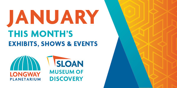 Make it a full day of discovery! Add a visit to Sloan Museum of Discovery across the street! Combo-tickets are a great option for our out-of-county guests who want to visit both the Longway Planetarium and Sloan Museum of Discovery on the same day. Get Combo-tickets here or in person at the Guest Services desk and save! (Did you know that Members, school teachers, active military members and their families, and military veterans all receive FREE general admission every day! Learn about all the discounts at SloanLongway.org/discounts) |