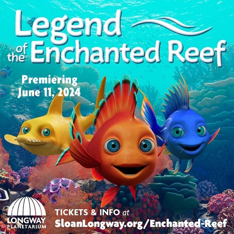 Join energetic Shorty, intelligent Indigo, and daring sawfish Jake on a colorful coral reef adventure. After a fishing trawler devastates their reef, the trio has no choice but to set out on a quest to find a new home. Their unforgettable journey brings them face-to-face with an octopus, dolphins, anglerfish, and other exotic creatures. Legend of the Enchanted Reef is filled with humor and imagination that the whole family will enjoy. Recommended for ages 5 and up. Premiering June 11 and running Tuesday-Sundays at 4 p.m.