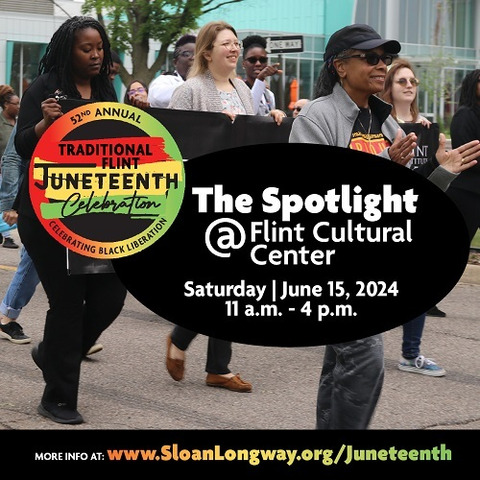 Juneteenth, also known as “Emancipation Day” or “Freedom Day,” commemorates the ending of slavery in the United States. It was declared a national holiday in 2021. Sloan Museum, Longway Planetarium, and our Flint Cultural Center campus partners are proud to host The Spotlight @ Flint Cultural Center on June 15, 11 a.m.-4 p.m., featuring live music by Flint's own Mama Sol, The Eclipse Band, and other live performers on stage. Check out all the Juneteenth events being held in Flint June 1-19 at SloanLongway.org/Juneteenth. |