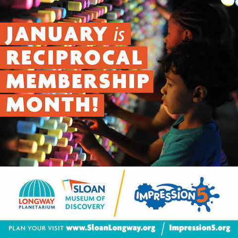 January is Reciprocal Membership month with Impression 5 Science Center in Lansing, and February will be Reciprocal Membership month with the Grand Rapids Children's Museum.