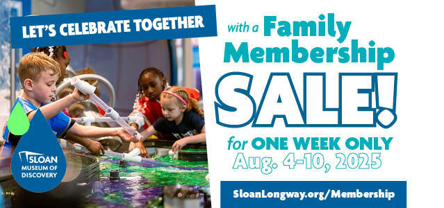 Not a member yet? Family Members receive free or discounted admission to special traveling exhibits (free admission to the current exhibit, Hall of Heroes, ending September 7); four free Member Day Passes to give to friends and family (good for 6 months from date of membership purchases); free admission to Longway Planetarium and Sloan Museum of Discovery; discounts in the gift shops, Coffee Beanery cafe', summer camps, workshops, special events; and more! For a list of all the benefits and to purchase your membership online, go to SloanLongway.org/Membership, email Matthew Fitzpatrick, Membership Coordinator, MFitzpatrick@SloanLongway.org, or call (810) 237 3457. |